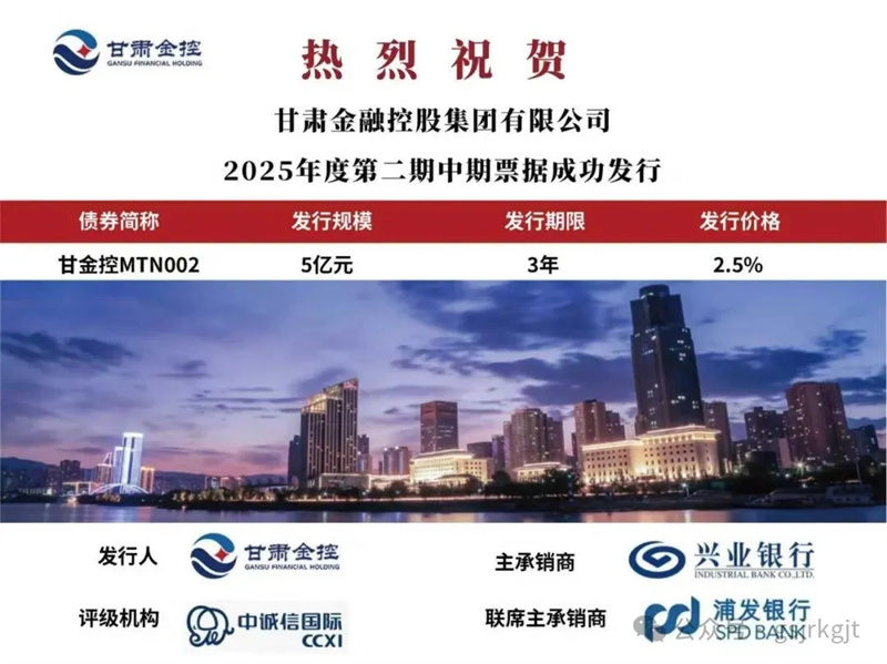 2025年10月17日,甘肃金控集团成功发行2025年度第二期中期票据。发行规模5亿元,期限3年,票面利率2.5%。票据发行过程中,吸引了多家商业银行、信托公司等机构乐鱼(中国)者积极参与,充分体现了资本市场对甘肃金控集团综合实力、战略布局和发展前景的认可,本次中期票据发行成功为集团的持续发展提供有力的资金保障。