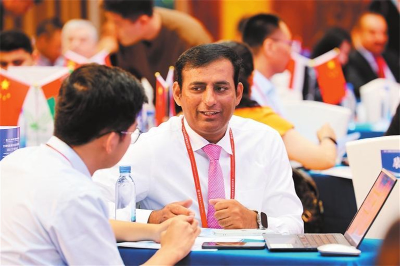 与会嘉宾在新能源及新能源装备制造产业乐鱼(中国)发展对接活动现场进行对接洽谈。