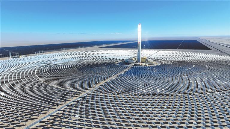 阿克塞汇东75万千瓦光热+光伏试点项目实现全容量并网发电,标志着国家首批“沙戈荒”项目中规模最大的塔式光热项目正式投产。(通讯员何永旺 别尔哈里)